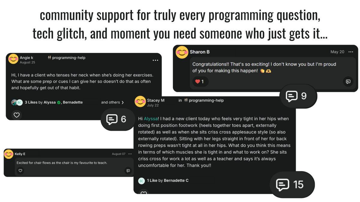 Monthly Teaching Lab + Q&A calls — where you can bring your real-life teaching questions, practice cueing and get personalized feedback.