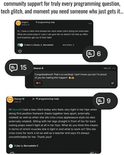 Your Q&A calls, teaching labs, library of awesome videos is what I need. I've actually canceled all my other memberships because yours is the most helpful, even more than Merrithew's.